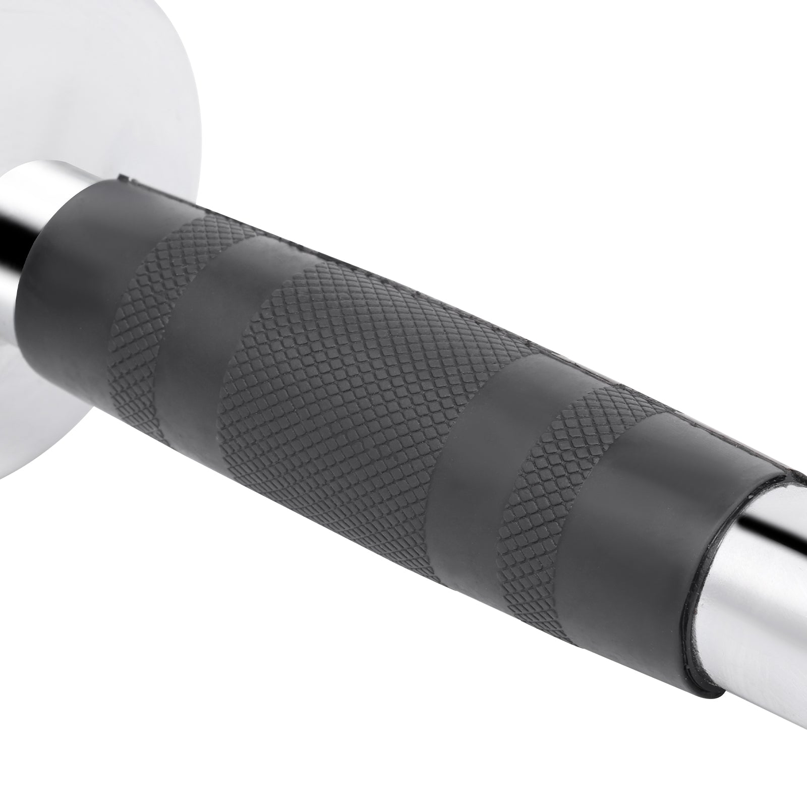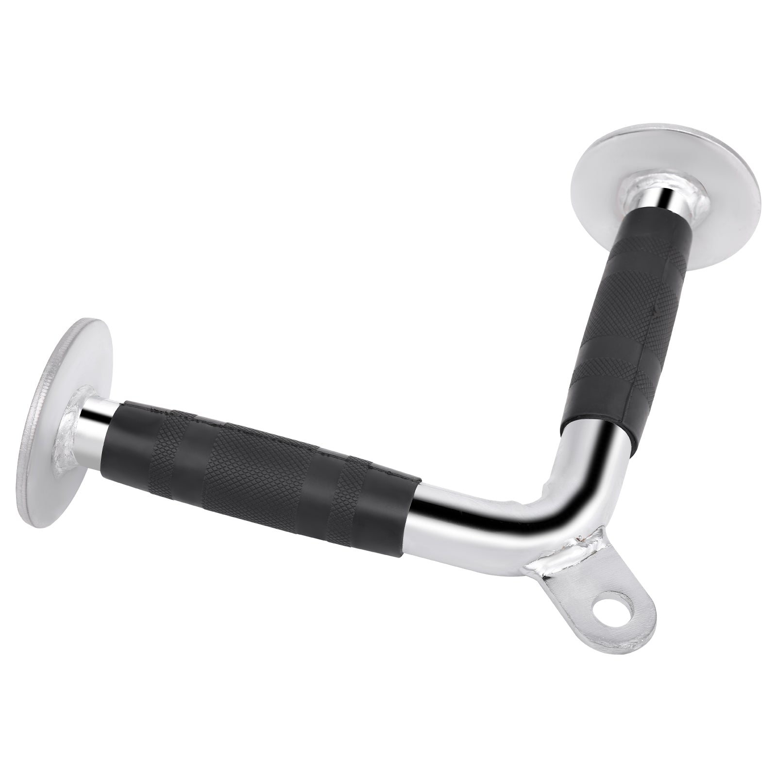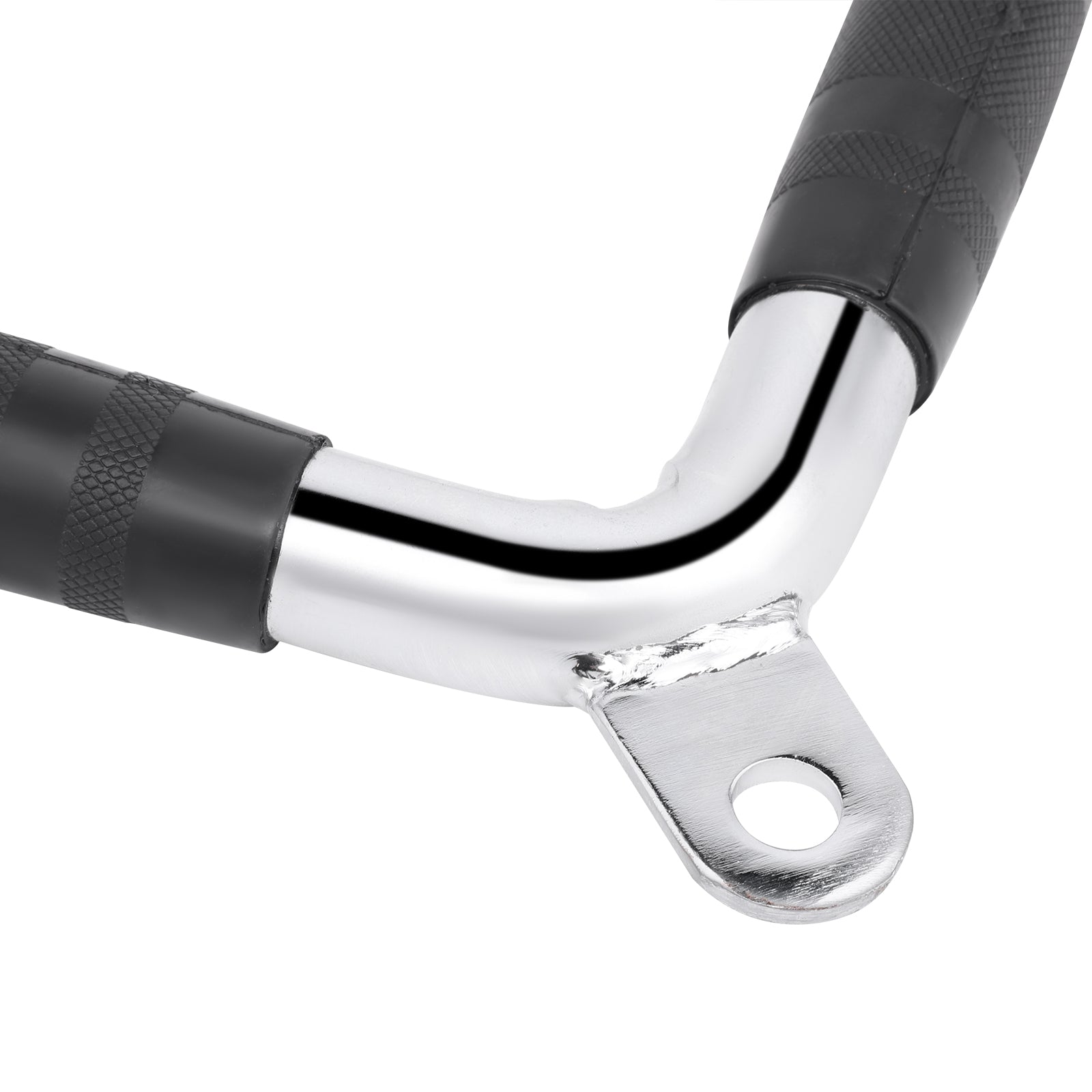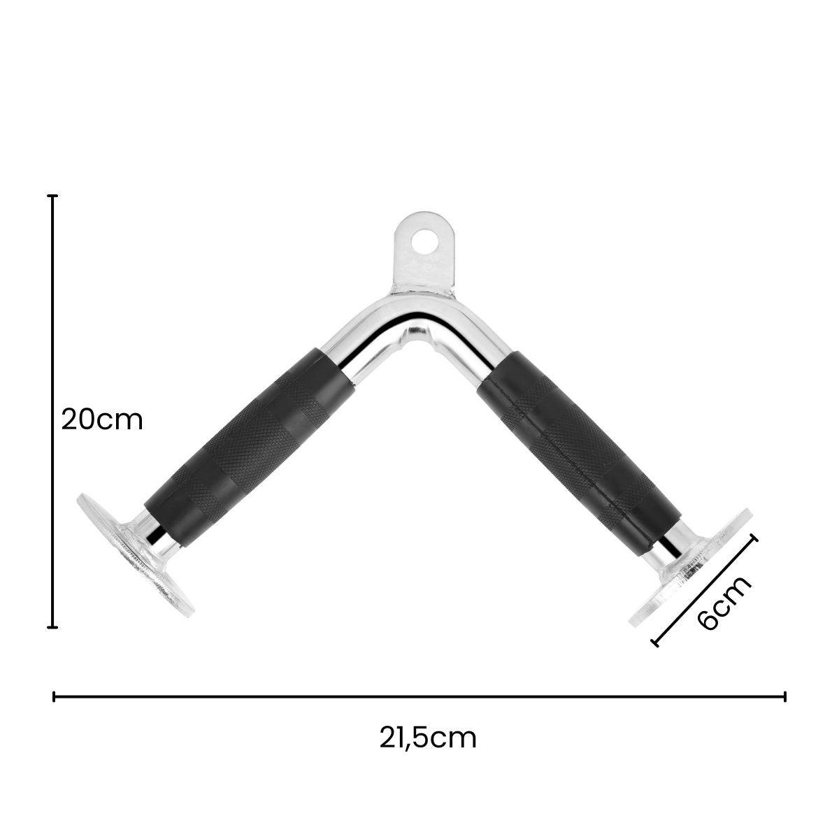 Fabricado con un acabado cromado de alta calidad y antideslizante, este agarre garantiza un rendimiento excepcional y seguridad adicional, ayudando a prevenir deslizamientos durante los ejercicios. Su diseño en forma de "V" permite un agarre natural, maximizando la eficiencia en tus entrenamientos.