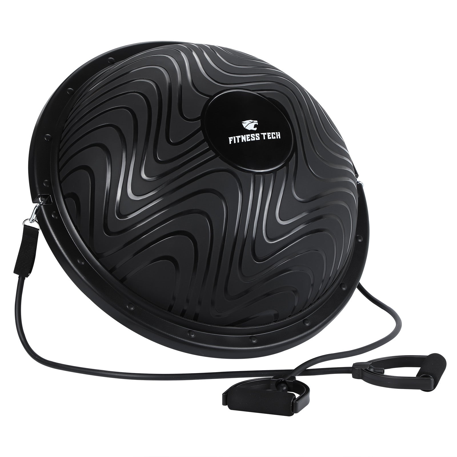 Semiesfera de equilibrio de 58 cm fabricada en PVC. Incluye dos bandas de resistencia extraíbles con mango de espuma suave para aumentar la fuerza de su brazo. Perfecto para múltiples entrenamientos para aumentar el equilibrio, la estabilidad, la fuerza central y la resistencia en la comodidad de su hogar. Perfecto para uso comercial o doméstico.