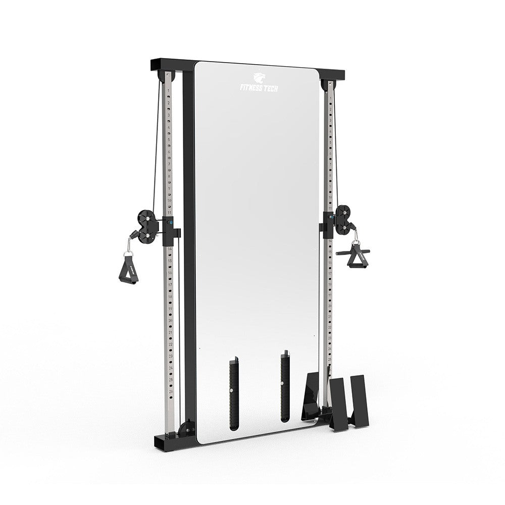 La Doble Polea de Pared con Efecto Espejo es la solución perfecta para entrenamientos funcionales de alto nivel en espacios reducidos. Su diseño compacto para montaje en pared, combinado con el elegante acabado en espejo, aporta un toque moderno y profesional mientras permite al usuario corregir su técnica en tiempo real. Gracias a sus 26 posiciones de altura y relación de cables 2:1, ofrece un movimiento suave, controlado y adaptable a todo tipo de ejercicios y usuarios.