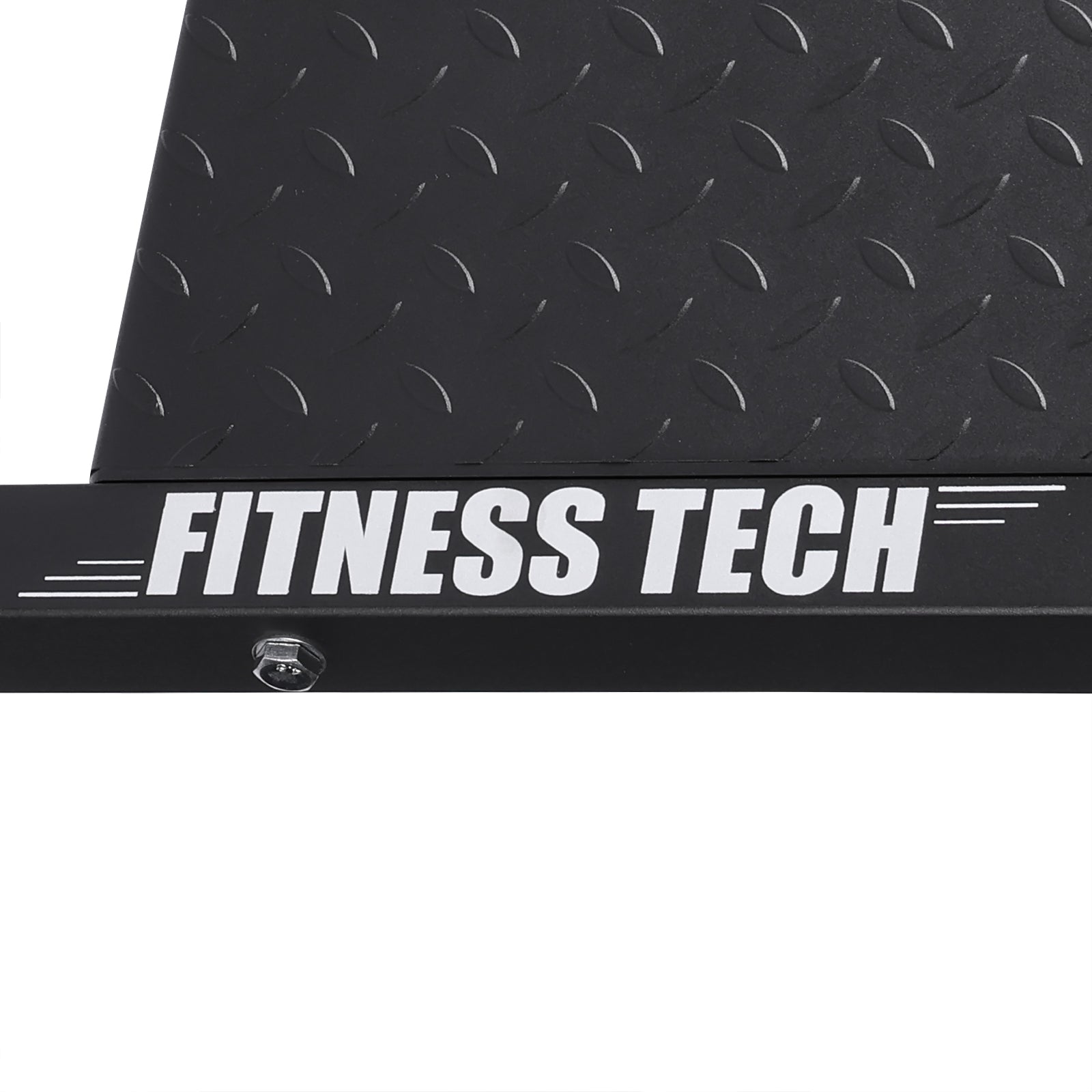 Con enganches laterales para sujetar las bandas de resistencia de Fitness Tech. Fabricado en acero de gran resistencia con asas y ruedas para su fácil transporte.
