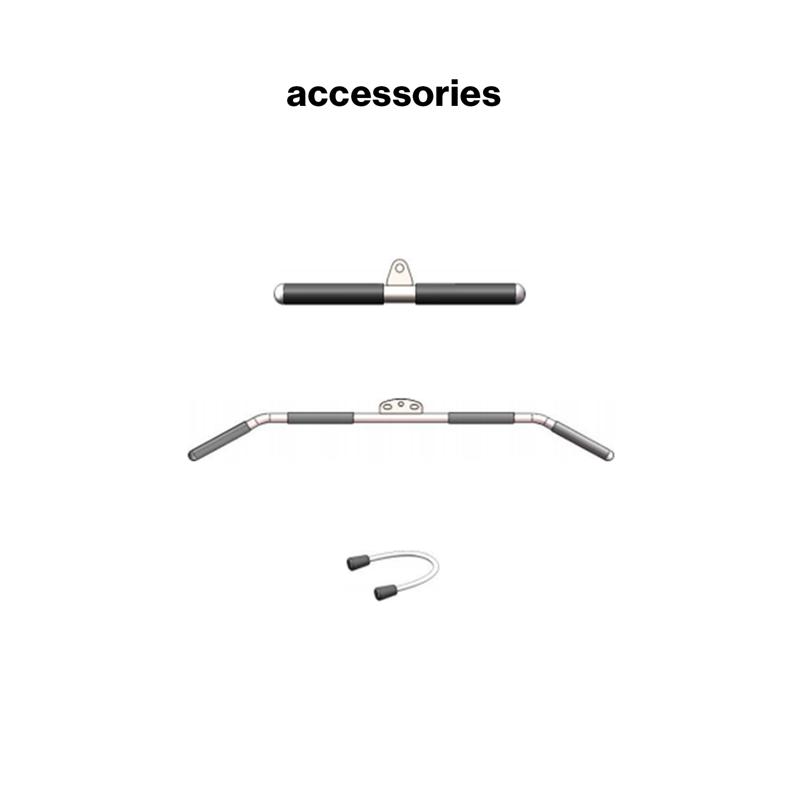 - Accesorios incluidos: barra dorsal, barra corta y polea de tríceps para una amplia variedad de ejercicios.