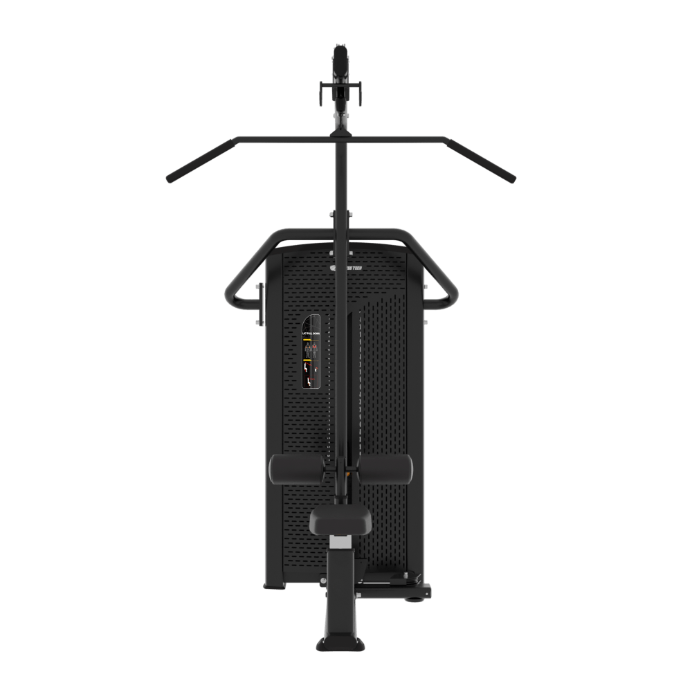 La máquina selectorizada de jalón al pecho es un equipo de musculación profesional diseñado para trabajar de forma segura y eficaz los músculos de la espalda, especialmente el dorsal ancho, los romboides y los bíceps. Gracias a su movimiento guiado y su relación de transmisión 1:1, permite una carga directa y uniforme que favorece la correcta ejecución del ejercicio sin comprometer las articulaciones. Su estructura robusta y su diseño ergonómico la convierten en una opción ideal para gimnasios, centros deportivos y espacios de entrenamiento intensivo.