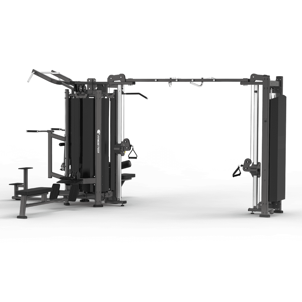 La multiestación de 5 puestos de la línea Pro Series de Fitness Tech está diseñada para ofrecer un entrenamiento completo, versátil y simultáneo en entornos profesionales de alto rendimiento. Gracias a su configuración avanzada con múltiples estaciones y sistema de poleas, permite trabajar todo el cuerpo en una única estructura, optimizando el espacio sin renunciar a la calidad del entrenamiento.