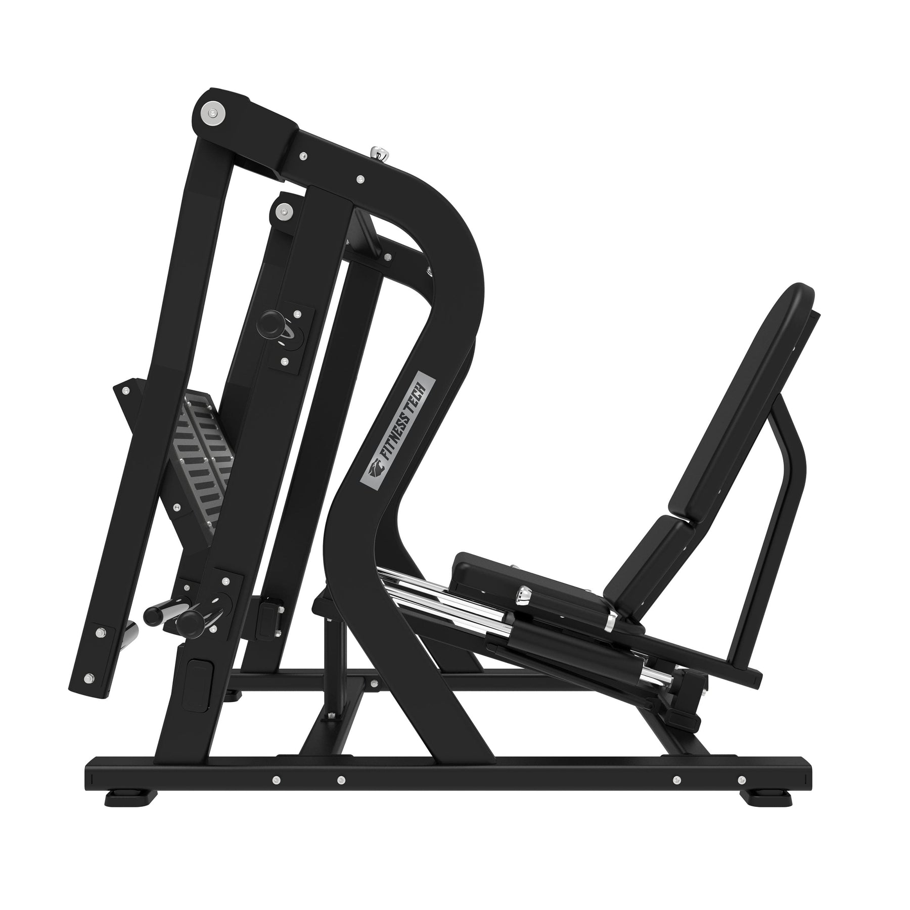 La Prensa de Piernas Horizontal de Fitness Tech está diseñada para ofrecer un movimiento suave, natural y biomecánicamente preciso. Su diseño compacto y estable permite desarrollar los músculos del tren inferior con total seguridad, ofreciendo una trayectoria horizontal que reduce la presión en la zona lumbar y mejora la postura durante todo el ejercicio.