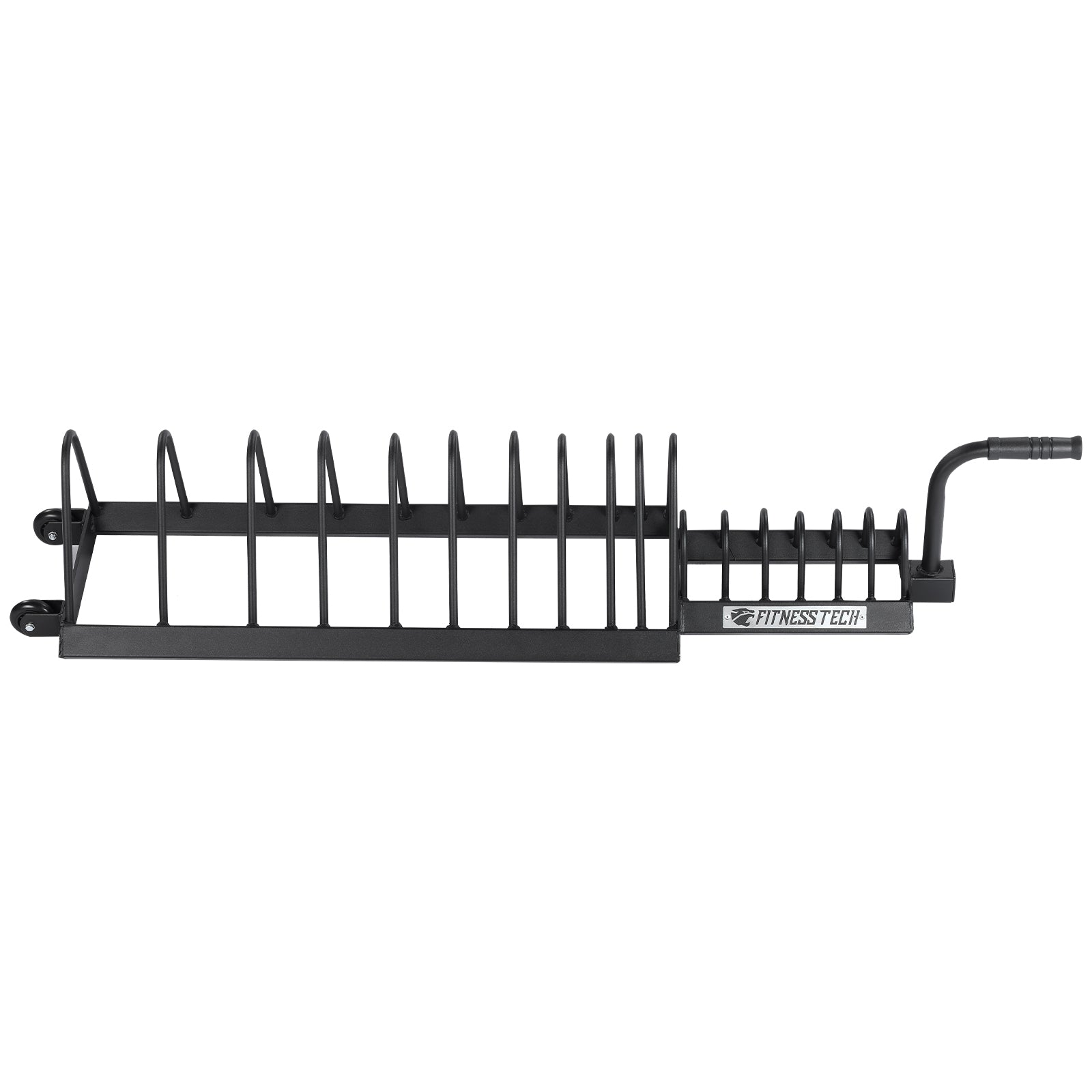 Cuenta con dos ruedas traseras y un asa cubierta de goma que te permite transportarlo con mayor facilidad y sin un sobresfuerzo. Incluso cargado con pesadas placas de pesas, el estante de pesas con ruedas puede moverse fácilmente.